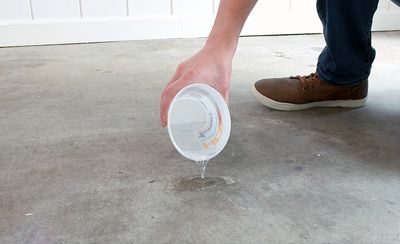 Your concrete floor should be clean, dry, flat and free of adhesives. Residue from strippers or cleaners should also be cleaned and rinsed with water. A concrete floor must be free of adhesives so that the tile will bond to it the right way.